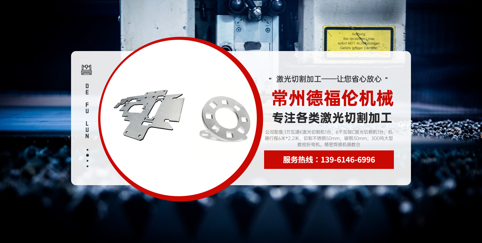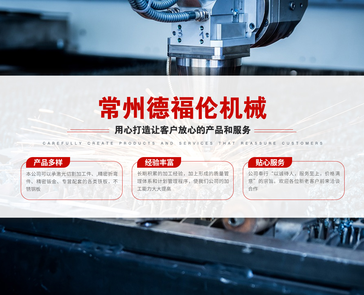 常州德福倫機(jī)械有限公司成立于2014年12月19號(hào),位于江蘇省常州市武進(jìn)區(qū)遙觀鎮(zhèn)建農(nóng)村劍童路56號(hào)西門;公司配備;1萬(wàn)瓦通K激光切割機(jī)1臺(tái),6千瓦領(lǐng)C激光切割機(jī)1臺(tái);機(jī)器行程6米*2.2米,切割不銹鋼50mm,碳鋼30mm;300噸大型數(shù)控折彎?rùn)C(jī)。精密焊接機(jī)器數(shù)臺(tái)。本公司可以承激光切割加工件、,精密折彎件、精密鈑金、專營(yíng)配套的各類鐵板,不銹鋼板。長(zhǎng)期積累的加工經(jīng)驗(yàn),加上形成的質(zhì)量管理體系和計(jì)劃管理程序,使我們公司的加工能力大大提高,滿足客戶所需,是我們公司的目標(biāo)!公司奉行“以誠(chéng)待人,服務(wù)為上,價(jià)格滿意”的宗旨。歡迎各位領(lǐng)導(dǎo);老總前來(lái)洽談合作!